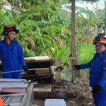 SARATOK: Suasana tenang di premis perkhidmatan kurier di Pekan Saratok semalam sedikit terganggu apabila ular sawa batik...