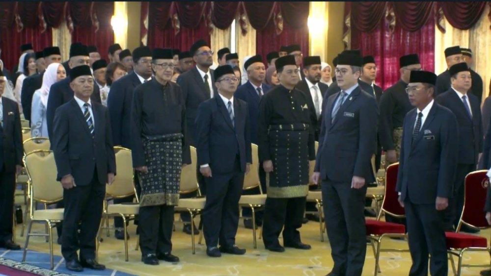 KOTA KINABALU: Sebanyak 10 Ahli Dewan Undangan Negeri (ADUN) mengangkat sumpah sebagai anggota Kabinet negeri di hadapan Yang Dipertua Negeri Sabah Tun Musa Aman di Istana Seri Kinabalu di sini hari ini.