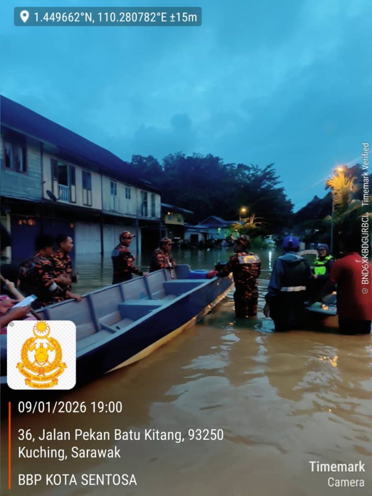 Pasukan bomba kemudiannya menggunakan bot milik penduduk setempat bagi memindahkan mangsa ke kawasan yang lebih tinggi sebelum dibawa ke PPS.