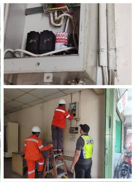 10 premis di sekitar Daerah Saratok dikenakan tindakan pemotongan bekalan elektrik sepanjang Op Dadu Khas IPD Saratok dengan kerjasama SEB dijalankan dari Jun hingga November tahun ini. Foto: IPD Saratok