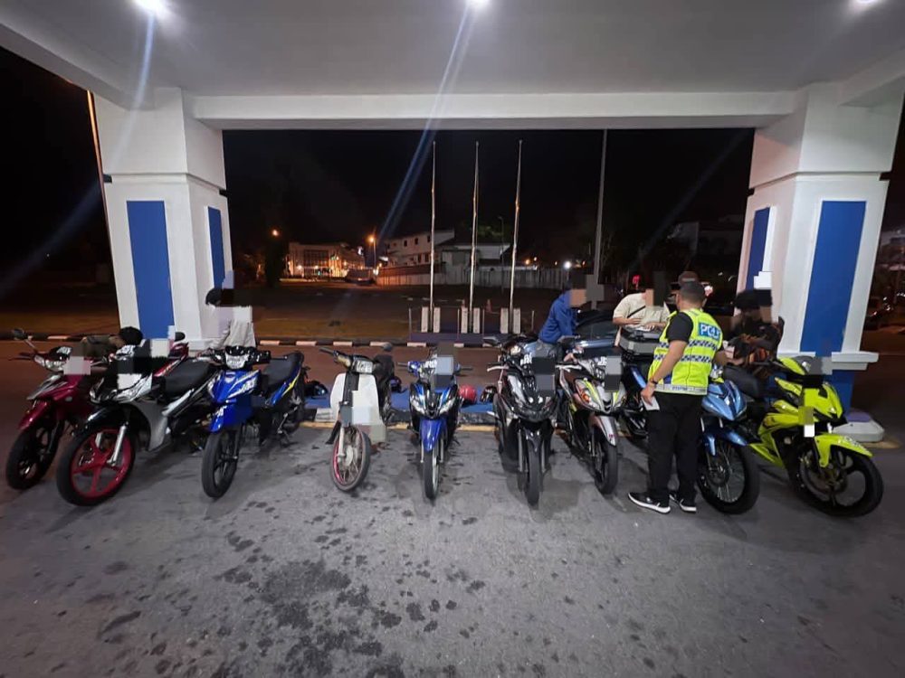 MIRI: Sebanyak 12 motosikal disita dalam Operasi Samseng Jalanan yang dijalankan oleh Bahagian Siasatan dan Penguatkuasaan Trafik, Ibu Pejabat Polis Daerah (IPD) Miri di sekitar bandar raya ini, baru-baru ini.
