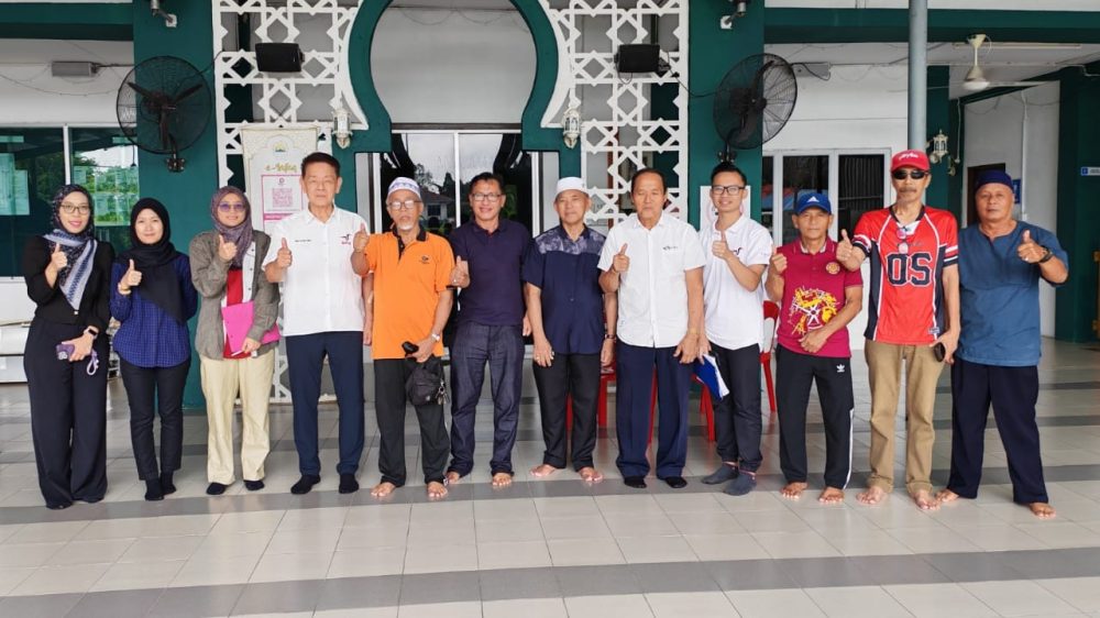 ADUN Meradong, Datuk Ding Koung Hiing bergambar bersama ahli jawatankuasa Masjid Al-Muhajirin. Foto Pusat Khidmat Meradong
