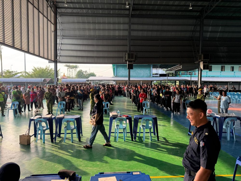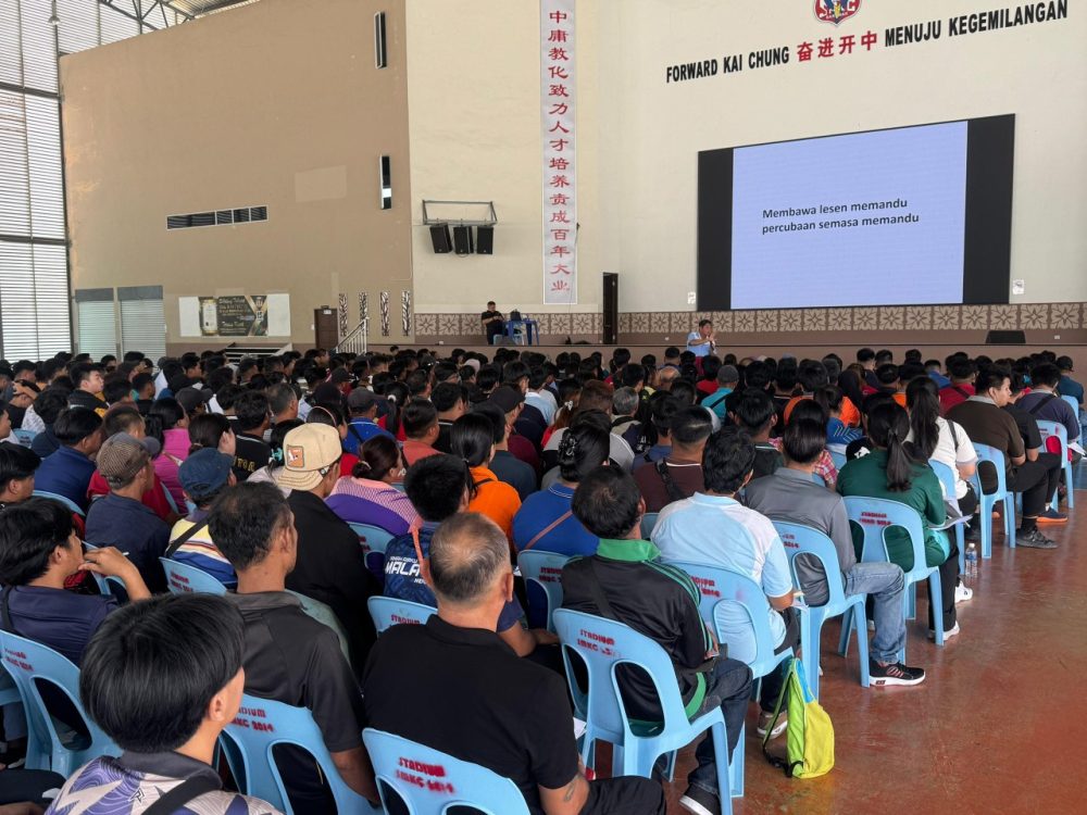 BINTANGOR: Seramai 1,600 orang peserta menduduki ujian bertulis Program Bantuan Lesen Memandu MyLesen Kelas B2 di Dewan Chen Ling Mei, Sekolah Menengah Kebangsaan (SMK) Kai Chung.