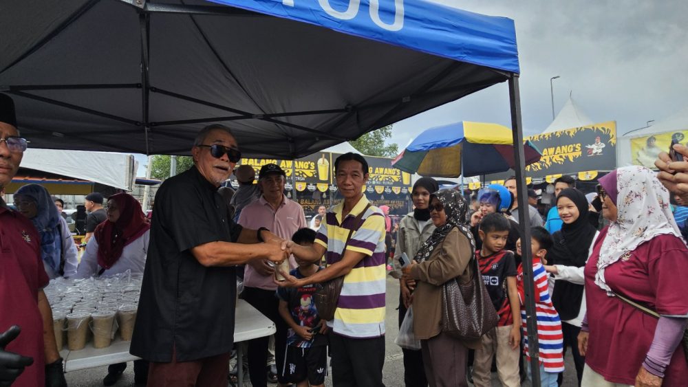 Len Talif yang juga Pengerusi Saberkas Kuala Rajang turut mengedarkan sebanyak 580 cawan bubur lambuk dari Saberkas Kuala Rajang kepada pengunjung sebagai tanda penghargaan dan semangat kebersamaan sepanjang Ramadan.