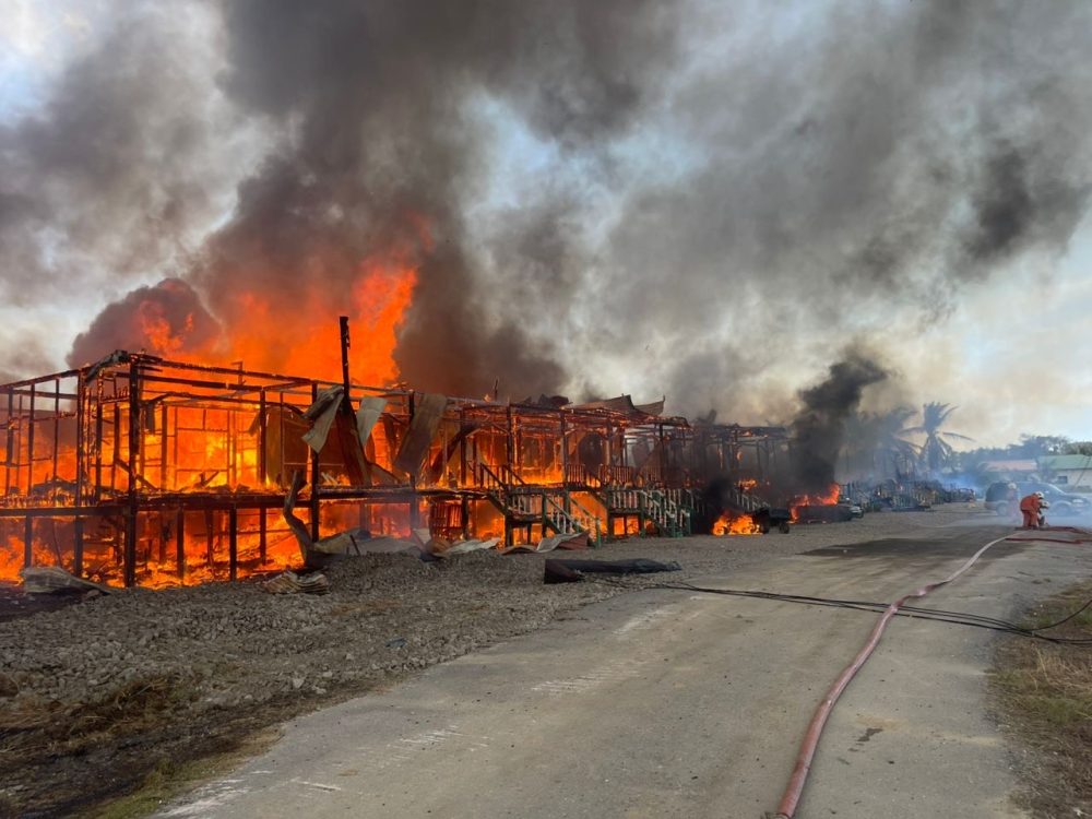 TATAU: Kira-kira 20 pintu Rumah James Kalip, Semanok di Jalan Pesisir Jepak-Kuala Tatau musnah dalam satu insiden kebakaran hari ini.