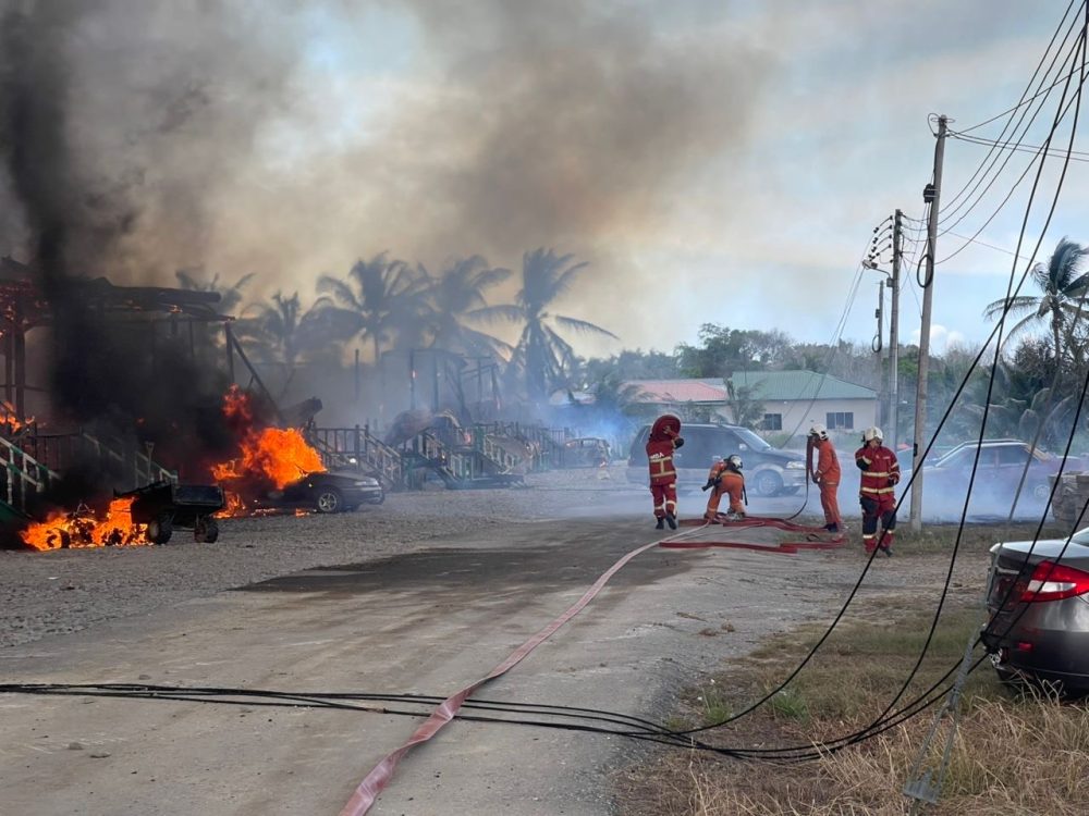 Difahamkan, beberapa kereta dan motosikal turut musnah dan jumlah sebenar kenderaan terlibat sedang dikenal pasti melalui maklumat pemilik.