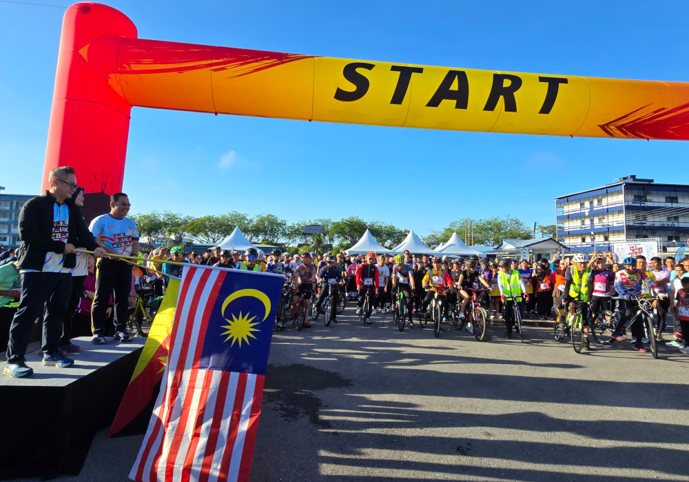 HSN 2025 Bahagian Sibu dimulakan dengan sesi pemanasan badan, pelepasan peserta Kayuhan Basikal MADANI 15 km, Larian Untuk Negara 5 km, dan Berjalan Ria MADANI ‘Keluarga Briswalk’ 2km.