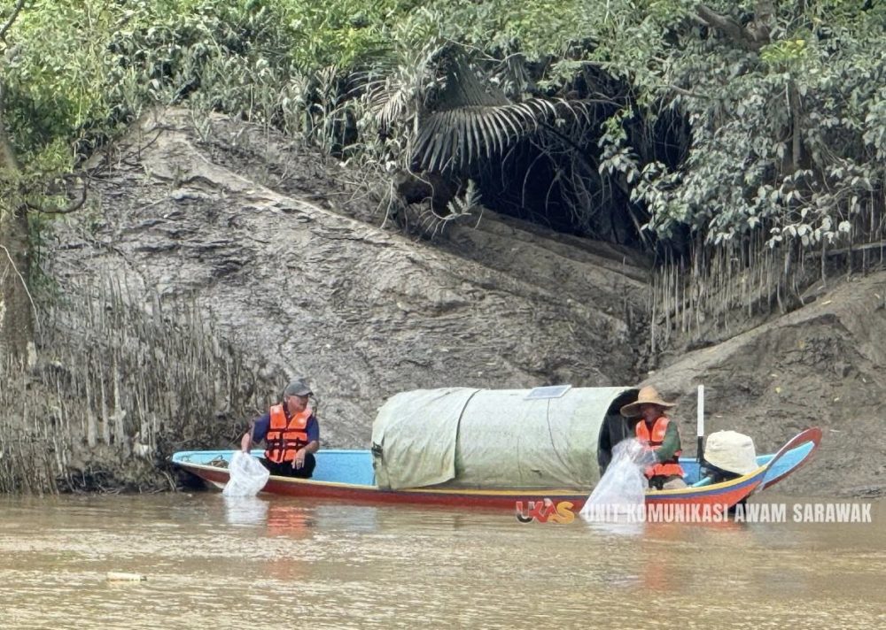 USAHA memperkukuh sumber perikanan darat serta meningkatkan taraf hidup komuniti luar bandar terus diberi keutamaan apabila sebanyak 20,000 benih udang galah dilepaskan ke dalam Sungai Simunjan. Foto UKAS