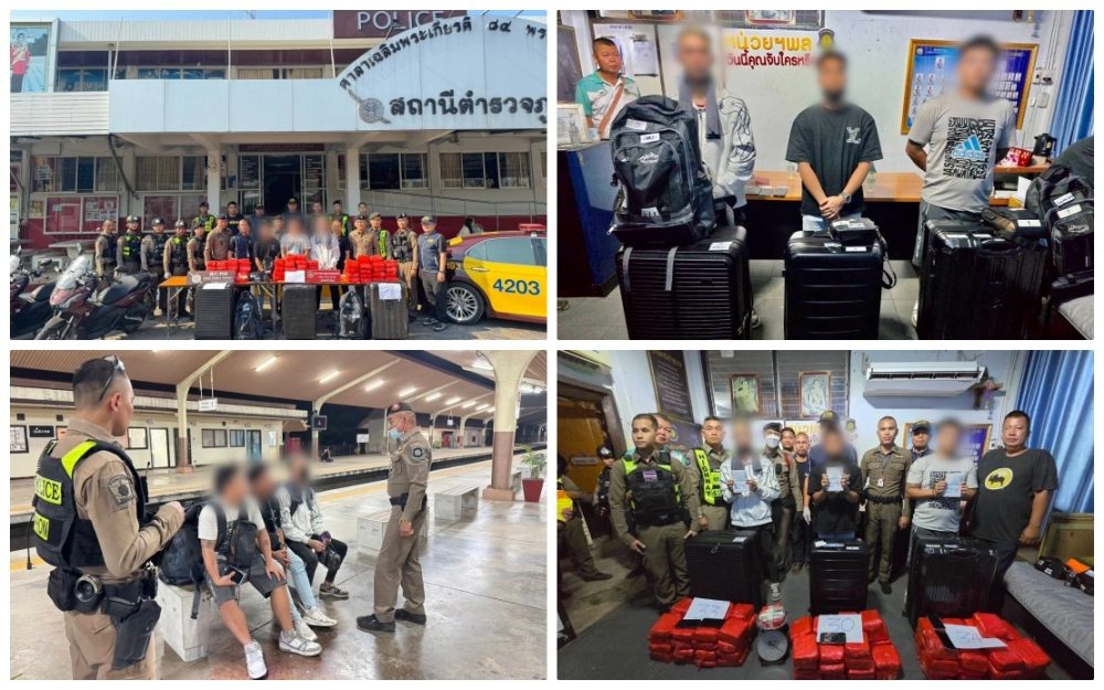 Dalam satu kenyataan, Biro Siasatan Pusat (CIB) memaklumkan suspek ditahan selepas pegawai menemui tiga beg pakaian tidak dituntut mengandungi dadah dalam tren yang bergerak dari Nong Khai ke Terminal Pusat Krung Thep Aphiwat di Bangkok.