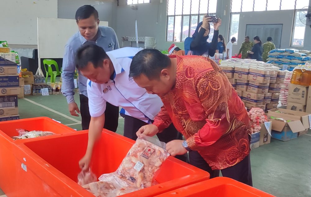 BEKALAN MENCUKUPI… Steve mendengar penerangan Dominic yang keperluan bekalan barangan keperluan untuk sambutan krismas di Lawas mencukupi.