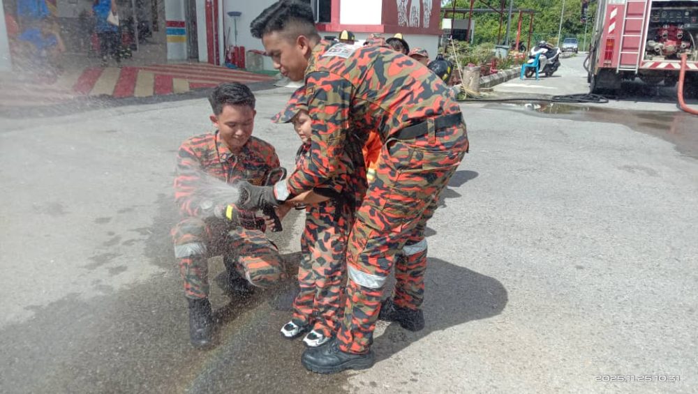 Tambahnya, aktiviti tersebut merangkumi ceramah kesedaran keselamatan kebakaran, pengenalan dan fungsi alat pemadam api serta demonstrasi ‘berhenti, rebah dan guling’.