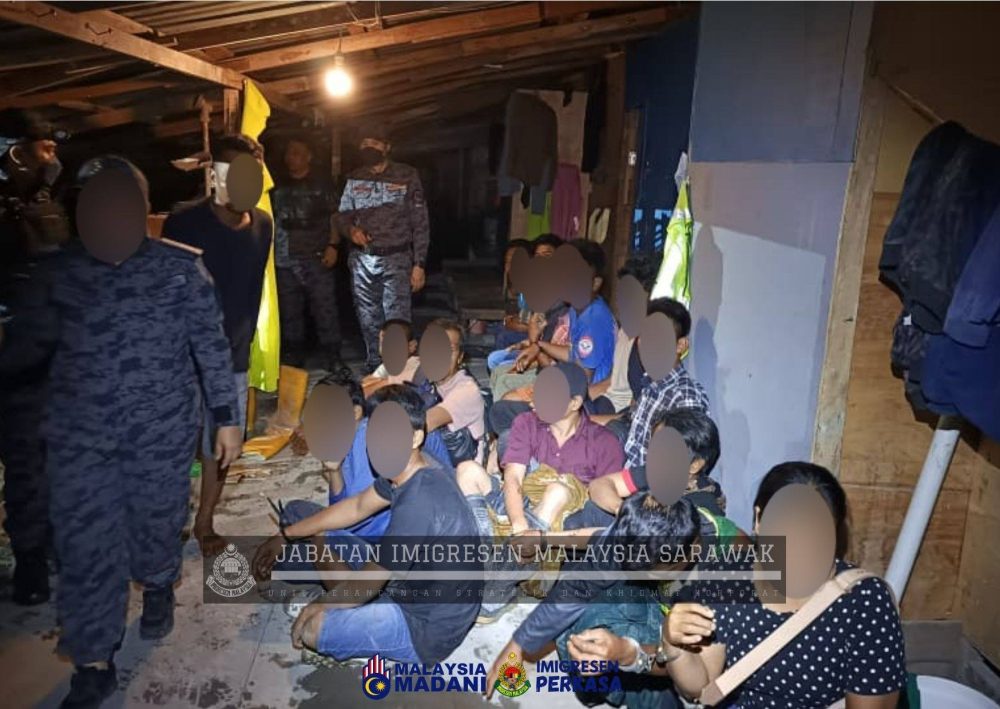 KOTA SAMARAHAN: Seramai 40 Pendatang Asing Tanpa Izin (PATI) ditahan oleh Bahagian Penguatkuasa Imigresen Kuching dalam satu operasi penguatkuasaan yang dijalankan di beberapa rumah kongsi di kawasan Samarahan dan Sejingkat, tengah malam tadi.