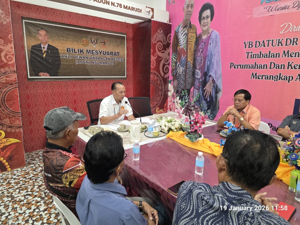 AMANAT…Ahli Dewan Undangan Negeri (ADUN)  Marudi,  Datuk Penguang Manggil menyampaikan amanat beliau semasa majlis penyerahan cek Projek Kecil Luar Bandar (MRP) kepada 48 penerima  dalam satu majlis penyerahan di Bilik Mesyuarat Pusat Khidmat ADUN N76 Cawangan Beluru, hari ini.