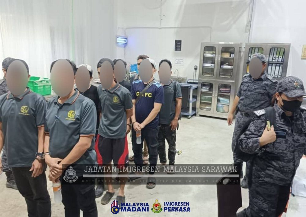 SERAMAI 64 warga asing ditahan dalam satu operasi penguatkuasaan bersepadu yang dijalankan di sekitar Kuching, bermula semalam. Foto Jabatan Imigresen Malaysia Sarawak