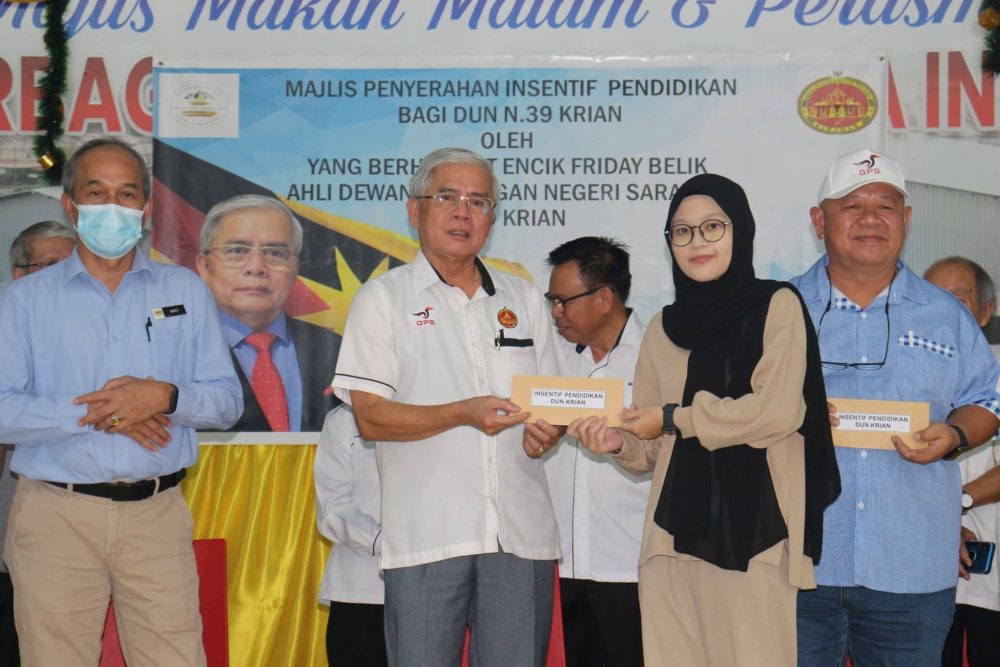 Beliau berkata demikian ketika berucap menyempurnakan Majlis Penyerahan Insentif Pendidikan bagi kawasan Dewan Undangan Negeri (DUN) Krian yang berlangsung di Dewan Taman Seroja Indah Saratok, semalam.