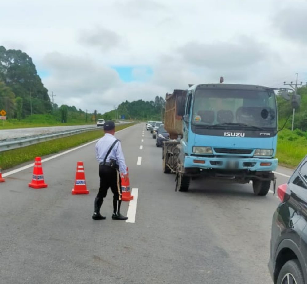 Pemeriksaan dilakukan secara teliti bagi memastikan setiap pemandu mempunyai dokumen sah serta kenderaan berada dalam keadaan yang selamat untuk dipandu di jalan raya.