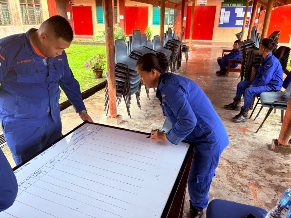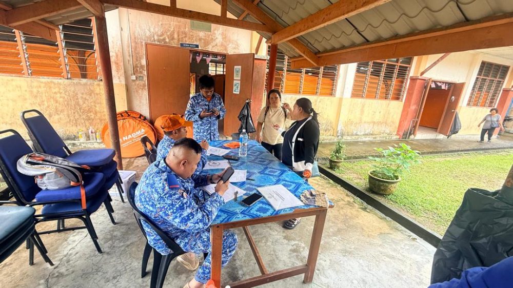 TERKAWAL… Proses pendaftaran dan pemindahan mangsa terjejas banjir ke PPS SK Bukit Arip sedang dijalankan. Foto APM Selangau