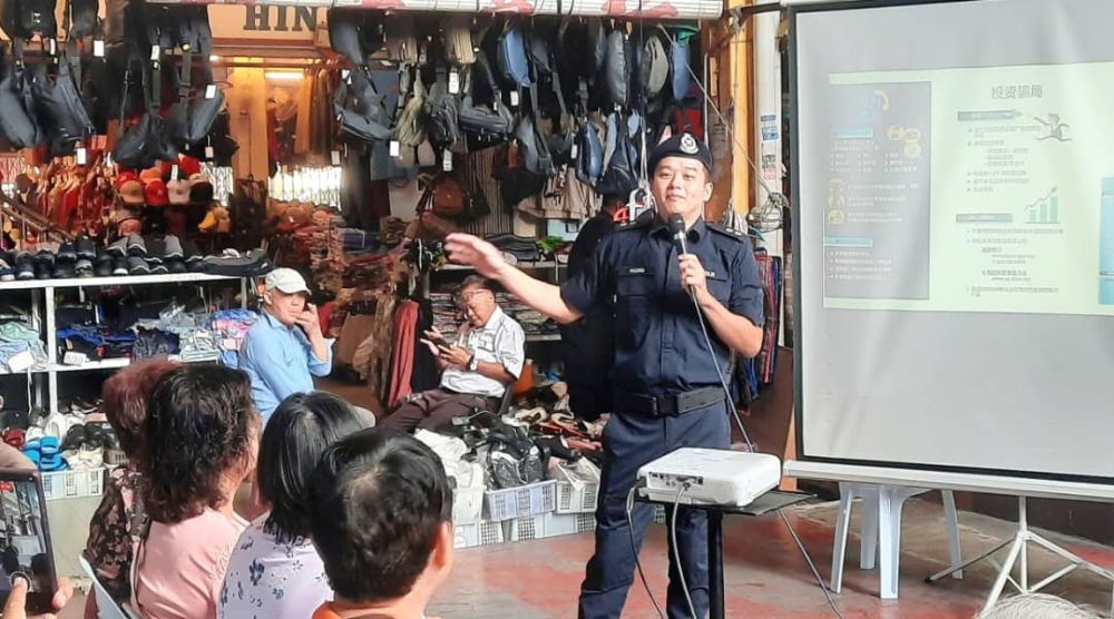 “Satu sesi ceramah kesedaran yang disampaikan oleh Bahagian Siasatan Jenayah Komersil (BSJKD) IPD Miri Insp. Huong Yeou Tay yang memberi penerangan mengenai taktik dan modus operandi sindiket penipuan dalam talian.