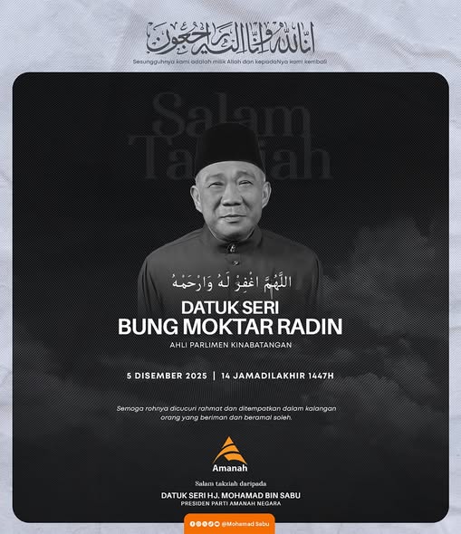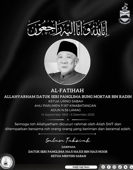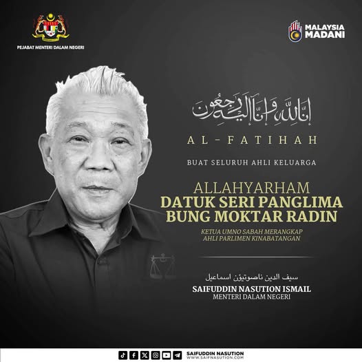 Bung Moktar, 66, yang berjaya mempertahankan kerusi Dewan Undangan Negeri Lamag pada PRN Sabah ke-17 baru-baru ini, meninggal dunia di sebuah hospital swasta di Kota Kinabalu pada 1.46 pagi ini.