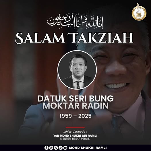 Menteri Besar Perlis Mohd Shukri Ramli menerusi hantaran di Facebook turut mengucapkan takziah kepada seluruh keluarga Allahyarham.