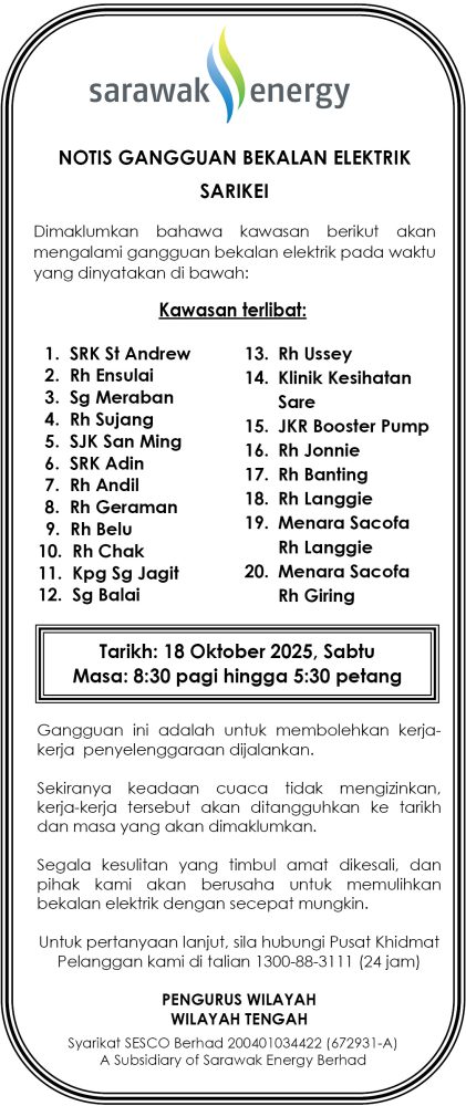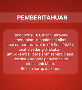 Facebook (FB) Utusan Sarawak mengalami masalah teknikal buat sementara waktu sejak hari ini (26 September 2025). Usaha...