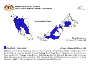 KUALA LUMPUR: Jabatan Meteorologi Malaysia (MetMalaysia) mengeluarkan amaran ribut petir, hujan lebat dan angin kencang berterusan melibatkan...