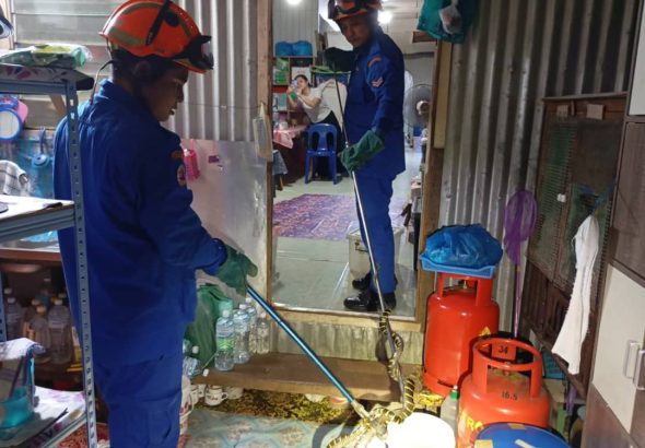 SIMANGGANG: Penduduk Kampung Pruan A berdepan detik cemas apabila menemui ular di bawah singki dapurnya malam tadi....