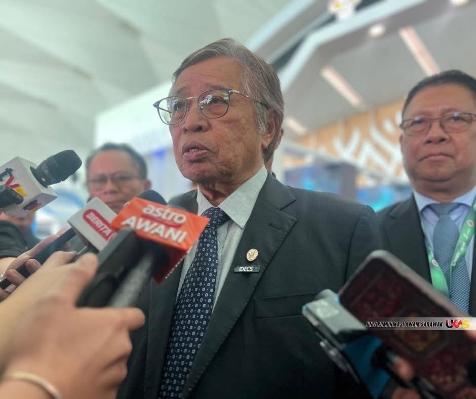 DITEMUI… Premier Sarawak, Datuk Patinggi Tan Sri Abang Johari Tun Openg ketika ditemui media selepas merasmikan IDECS Ke-8 di BCCK, hari ini. FOTO UKAS