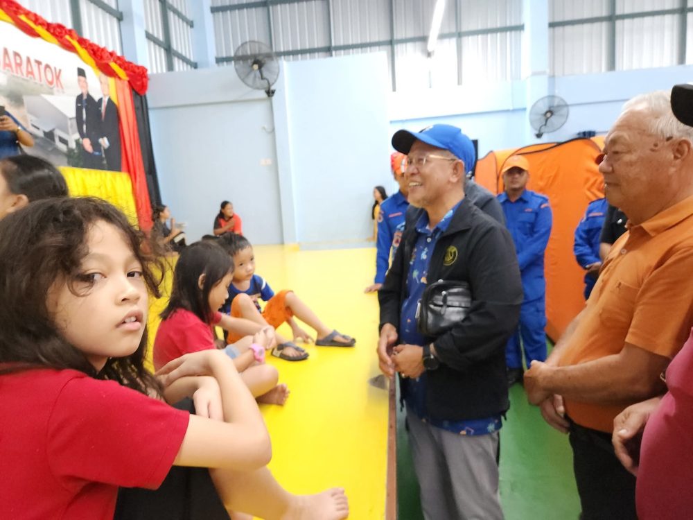 MOHAMAD Duri turun padang menziarahi dan menyantuni mangsa-mangsa banjir dari Rumah Ason, Tembawai Kapok, Awik di PPS Dewan Serbaguna Taman Seroja Indah, Saratok. Foto Pusat Khidmat ADUN Kalaka