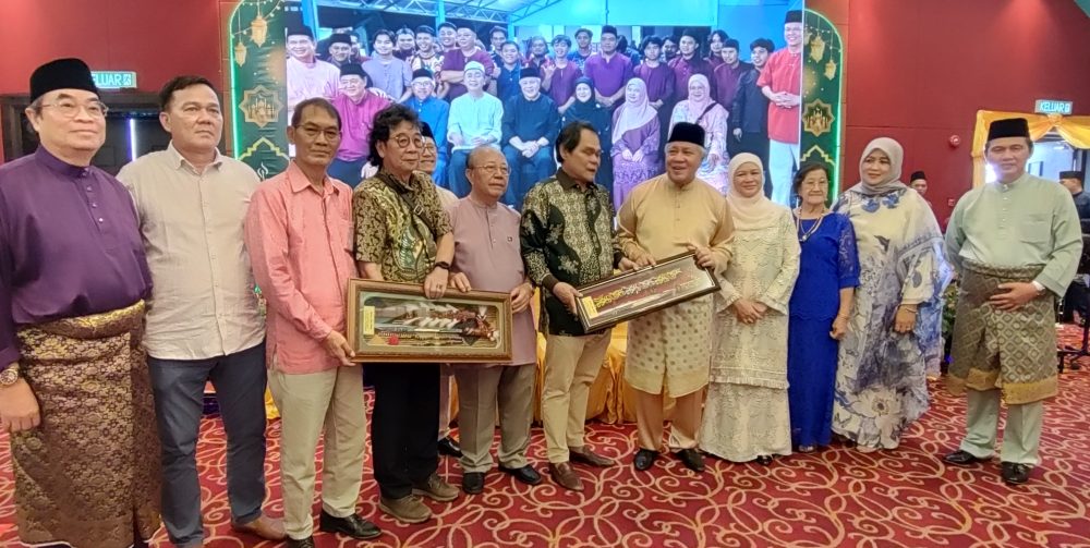 RAYA KITA...Awang Tengah menerima cenderamata pedang Orang Ulu daripada Ahli Parlimen Baram Anyi Ngau bersama rombongan daripada Baram.