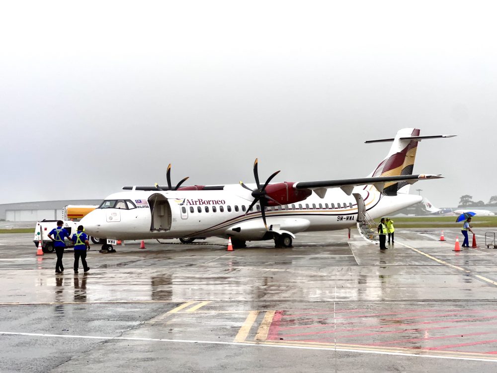 PESAWAT AirBorneo bersiap untuk penerbangan sulung Kuching–Mukah, satu detik bersejarah bagi keterhubungan udara Sarawak. Foto Adele Rissa