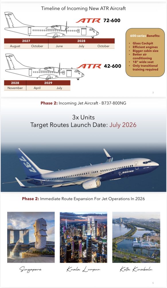 “Kita akan memulakan operasi dengan tiga pesawat yang disewa secara wet lease dan pesawat ini akan terbang ke beberapa destinasi.
