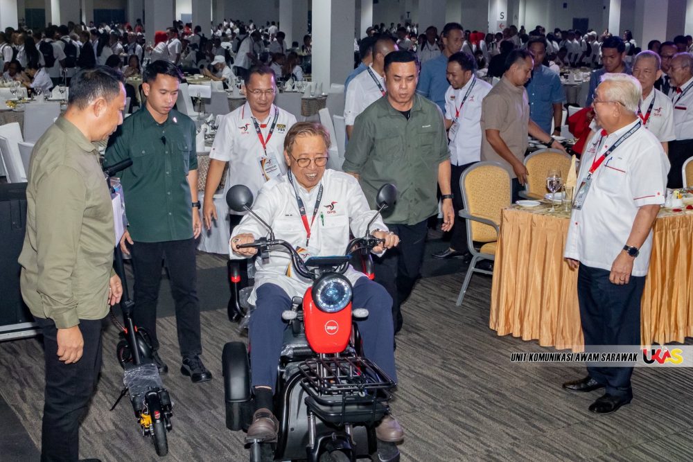 KUCHING: Suasana Majlis Makan Malam sempena Konvensyen Gabungan Parti Sarawak (GPS) 2026 malam ini bertukar santai dan ceria apabila Premier Sarawak, Datuk Patinggi Tan Sri Abang Johari Tun Openg mencuri perhatian dengan aksi bersahaja menunggang skuter elektrik.