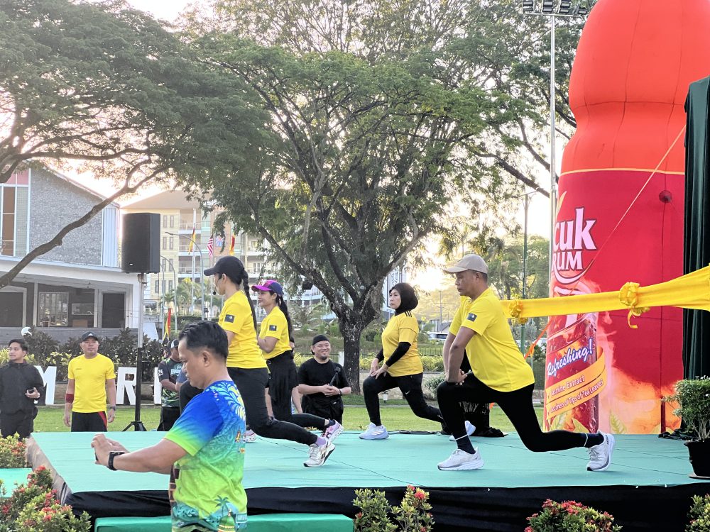 AKTIVITI berjalan kaki dan bersenam menceriakan Pagi Tanpa Kenderaan Kuching di Padang Merdeka.