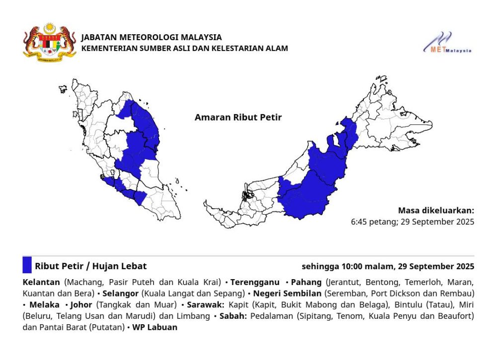 • Amaran ribut petir di kebanyakan negeri malam ini – MetMalaysia