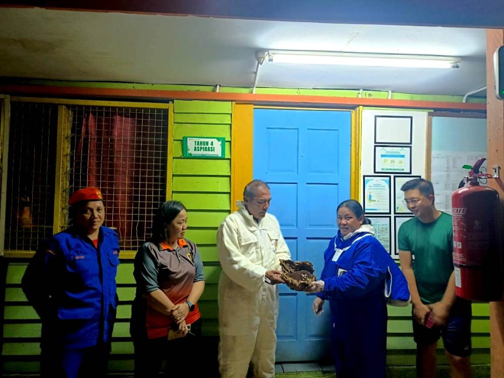 BELURU: Pusat Kawalan Operasi Daerah (PKOD) Beluru menerima panggilan kecemasan mohon bantuan untuk memusnahkan sarang serangga di tepi bumbung kuarters guru di SK Sungai Bain Beluru semalam.