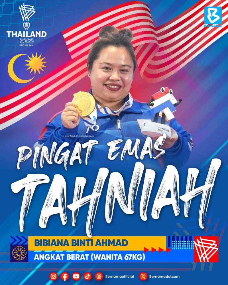 ATLET para powerlifting negara Bibiana Ahmad akhirnya menamatkan penantian apabila meraih pingat emas pertamanya dalam acara wanita 67 kilogram pada Sukan Para ASEAN (APG) Thailand 2025.
