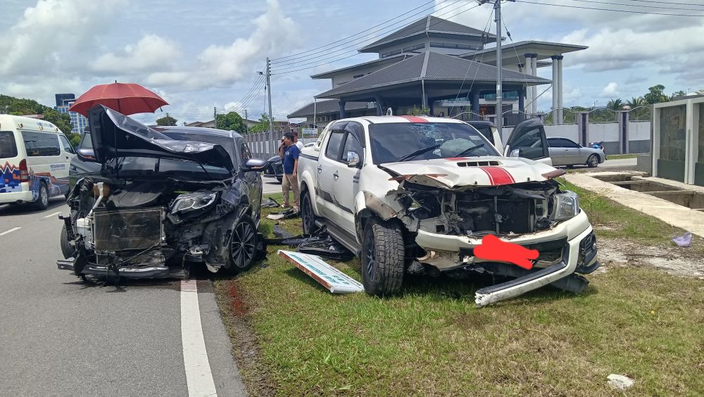 “Sementara itu, dua lelaki dewasa berumur 34 tahun dan 49 tahun yang berada dalam Toyota Hilux dilaporkan mengalami kesakitan di bahagian bahu dan dada masing-masing,” katanya.