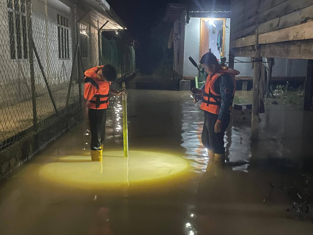 Anggota APM Debak menggiatkan pemantauan terperinci di beberapa kawasan yang dikenal pasti mengalami kenaikan paras air susulan hujan berterusan sejak awal pagi tadi. Foto: APM Debak