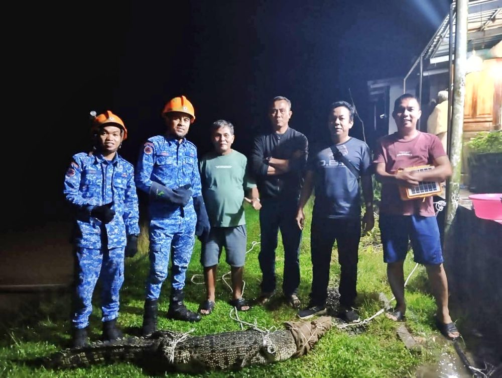 DEBAK: Angkatan Pertahanan Awam Malaysia (APM) Daerah Debak berjaya menangkap seekor buaya di sebuah kolam ikan di kawasan Babu Tengah, Debak, malam tadi.
