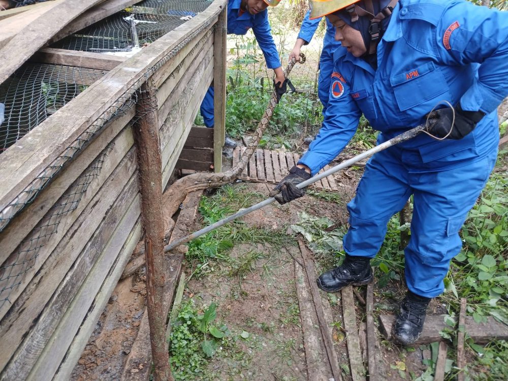 Menurut kenyataan media APM Daerah Debak, operasi tersebut dijalankan selepas pihaknya menerima maklumat daripada orang awam sekitar 10.30 pagi berhubung kehadiran reptilia berkenaan di kawasan kediaman, yang dipercayai telah memangsa seekor itik.