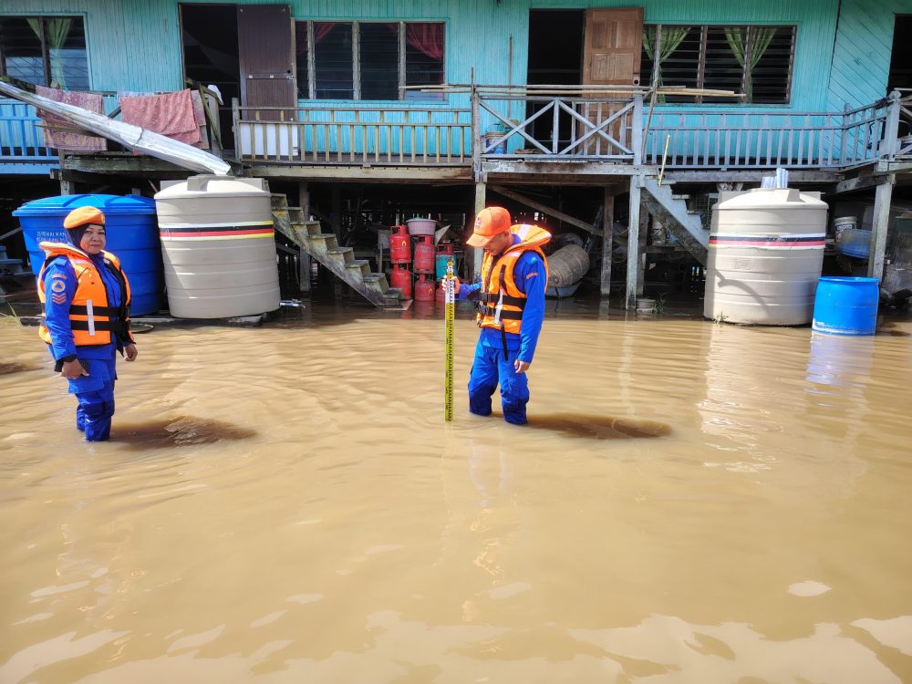 MARUDI: Angkatan Pertahanan Awam (APM) Marudi di tiga daerah, iaitu Marudi, Beluru dan Telang Usan, giat melakukan pemantauan di beberapa lokasi yang dilanda kenaikan paras air.
