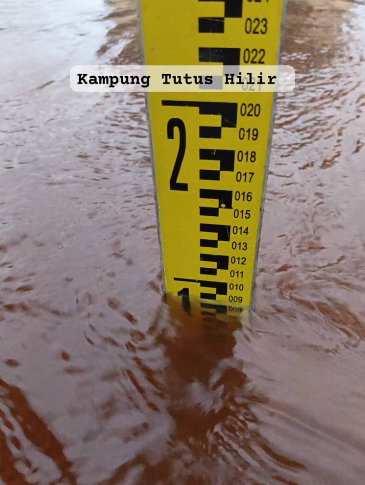 Sementara itu, di Kampung Tutus Ulu, paras air sungai dilaporkan pasang namun aliran air kekal lancar tanpa sebarang halangan dan keadaan masih selamat.