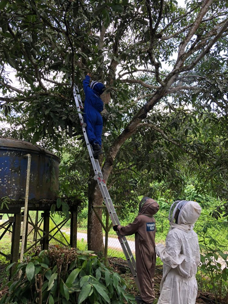 “Sebaik tiba di lokasi, pasukan membuat tinjauan dan mendapati terdapat tiga sarang penyengat anting-anting sebesar botol mineral di atas pokok mangga.