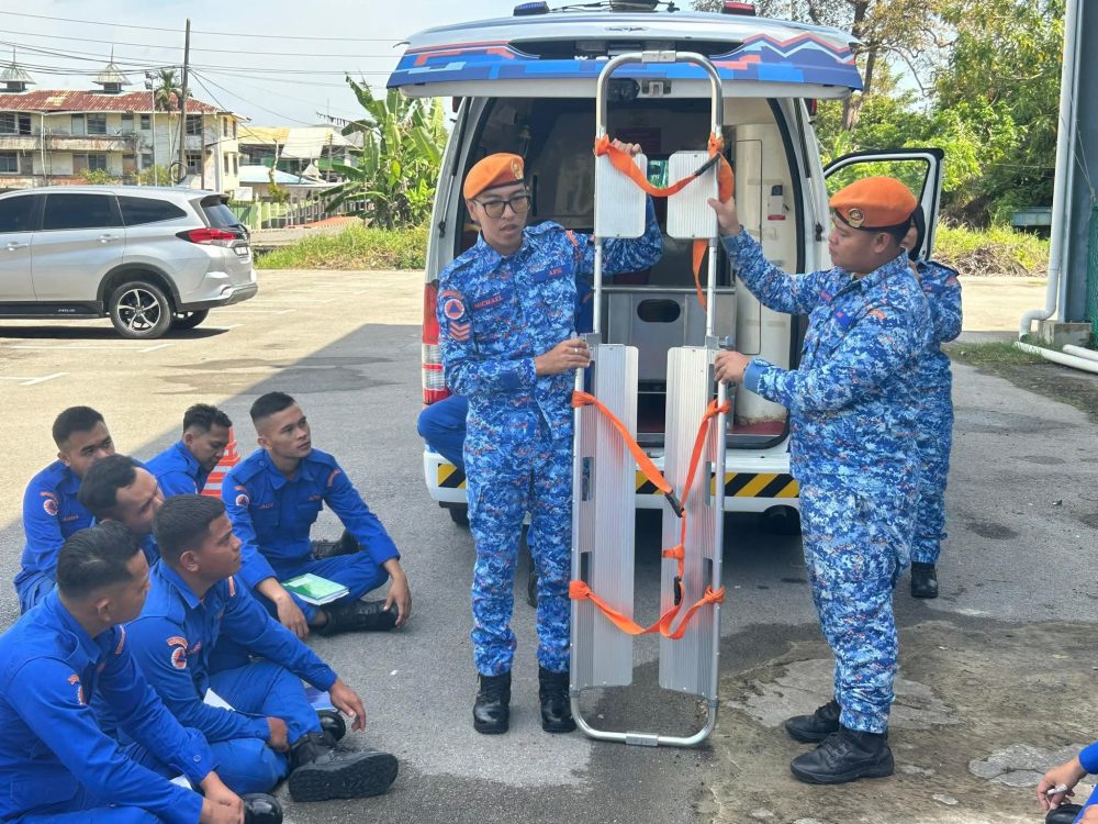 APM Saratok melaksanakan Latihan Pasukan Mingguan Oktober yang menumpukan kepada pengendalian ambulans, peralatan perubatan kecemasan dan kawad kaki. Foto: APM Saratok