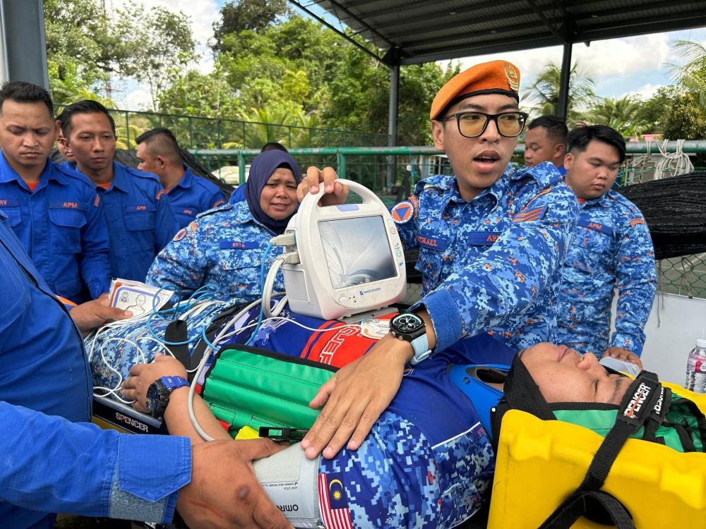 “Latihan ini memberi penekanan terhadap pemeriksaan ambulans, penggunaan defibrillator automatik luaran (AED), alat bantuan pernafasan, set trauma dan oksigen terapi, selain prosedur membawa serta menguruskan mangsa dalam ambulans,” katanya.
