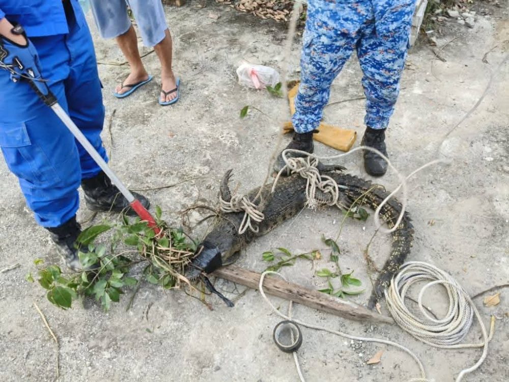 SARIKEI: Seekor buaya dianggarkan sepanjang enam kaki berjaya ditangkap oleh Angkatan Pertahanan Awam Malaysia (APM) Sarikei selepas ditemui di dalam parit berhampiran sebuah kediaman di Lorong 6, Taman Susur Jambu pada semalam.
