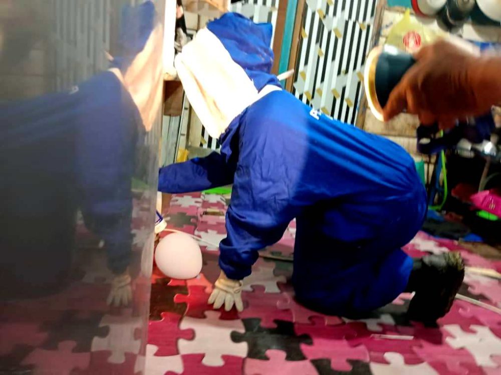 Sarang serangga berkenaan yang berukuran lebih kurang satu tapak tanagan dewasa berjaya dimusnahkan dengan menggunakan semburan baygon.