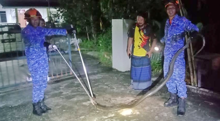 SPAOH: Kecekapan anggota Angkatan Pertahanan Awam Malaysia (APM) Daerah Spaoh berjaya menyelamatkan sebuah keluarga daripada ancaman reptilia berbisa selepas seekor ular tedung selar ditemui di Kampung Bungin, semalam.