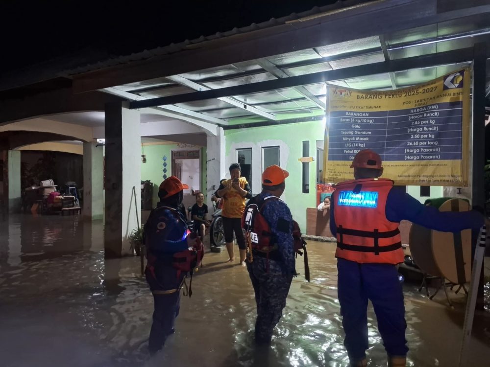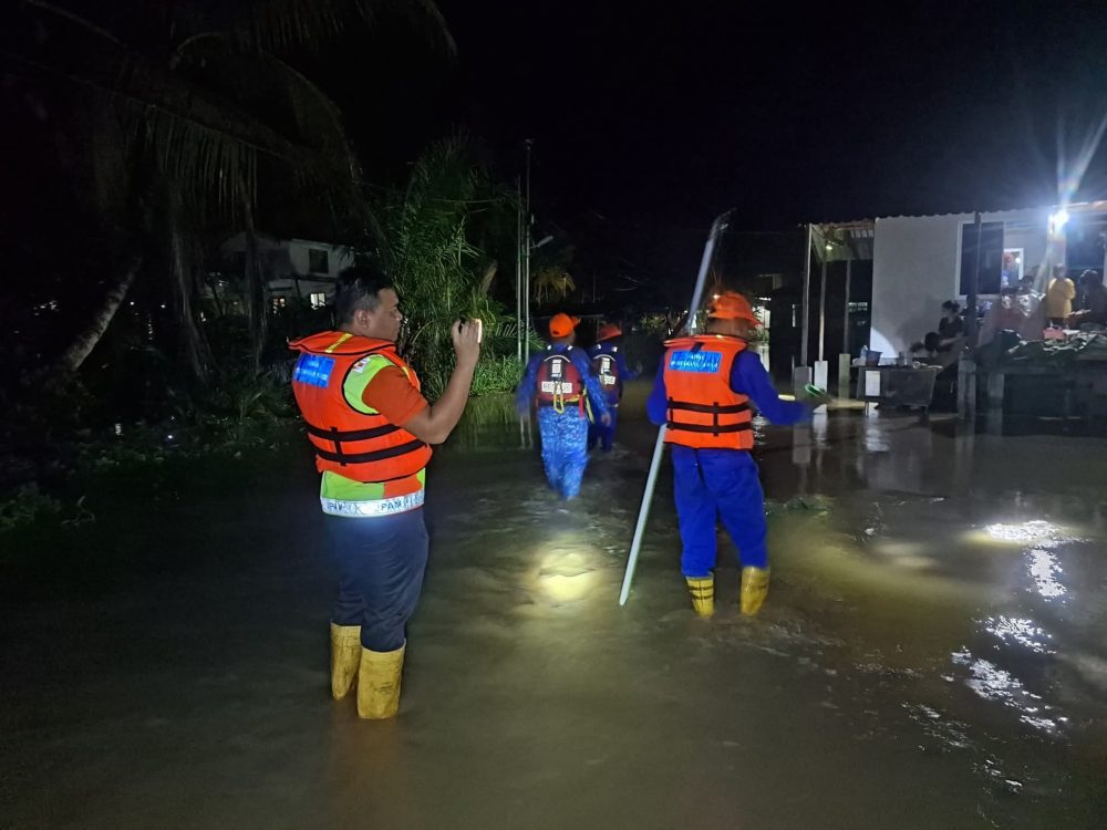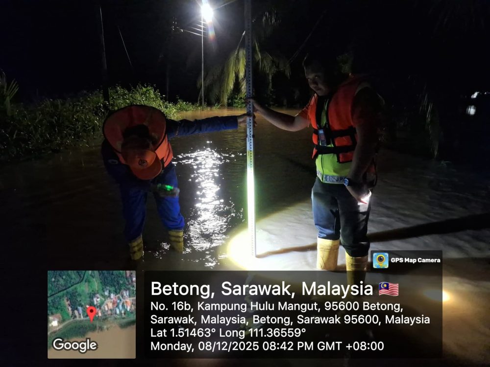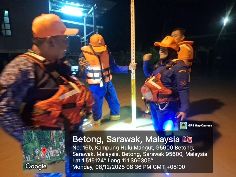 ANGGOTA APM Spaoh melakukan rondaan dan tinjauan di beberapa kawasan berisiko banjir susulan fenomena air pasang besar mencecah paras 6.1 meter di Kampung Manggut, hari ini. Foto APM Spaoh